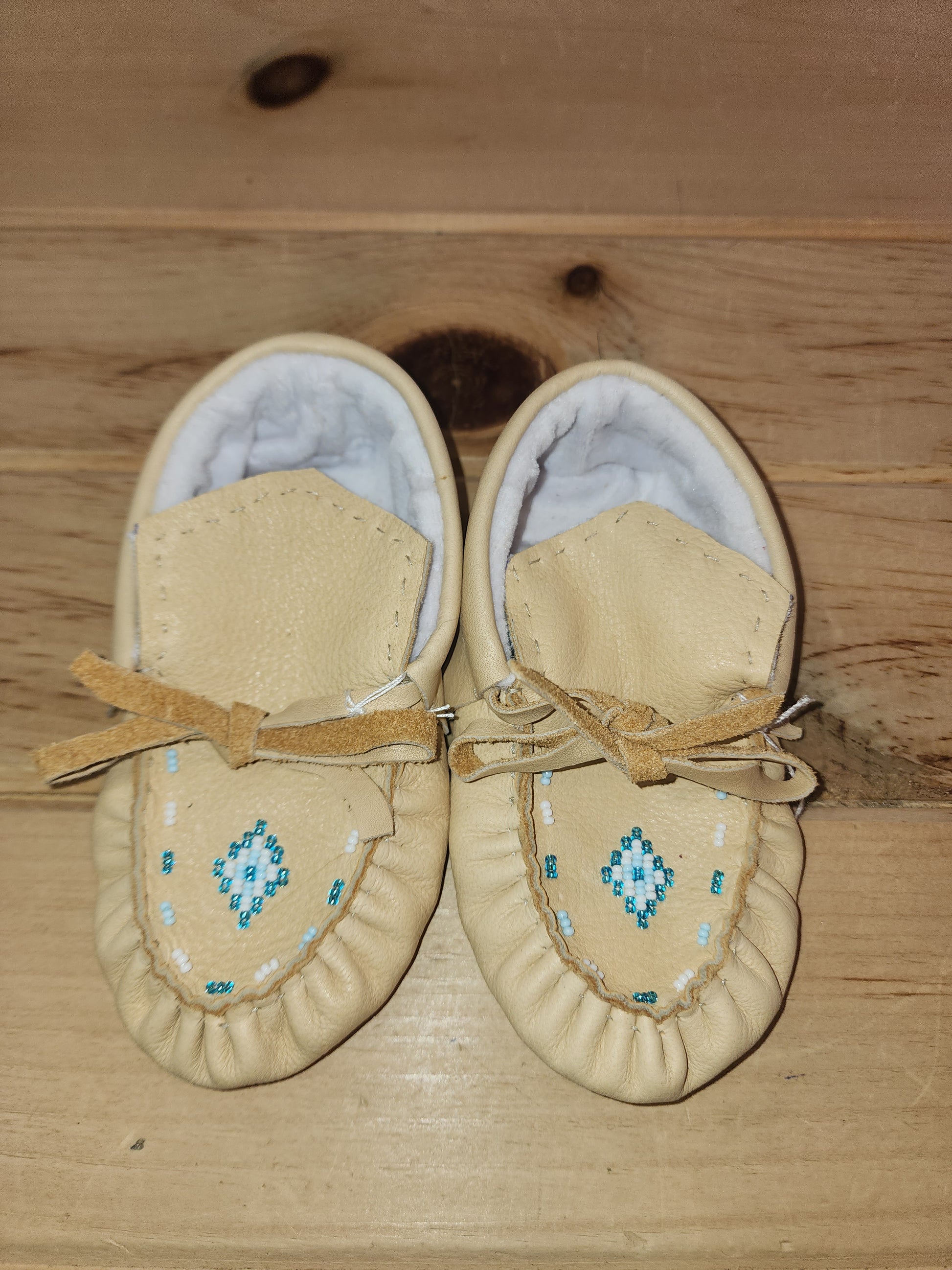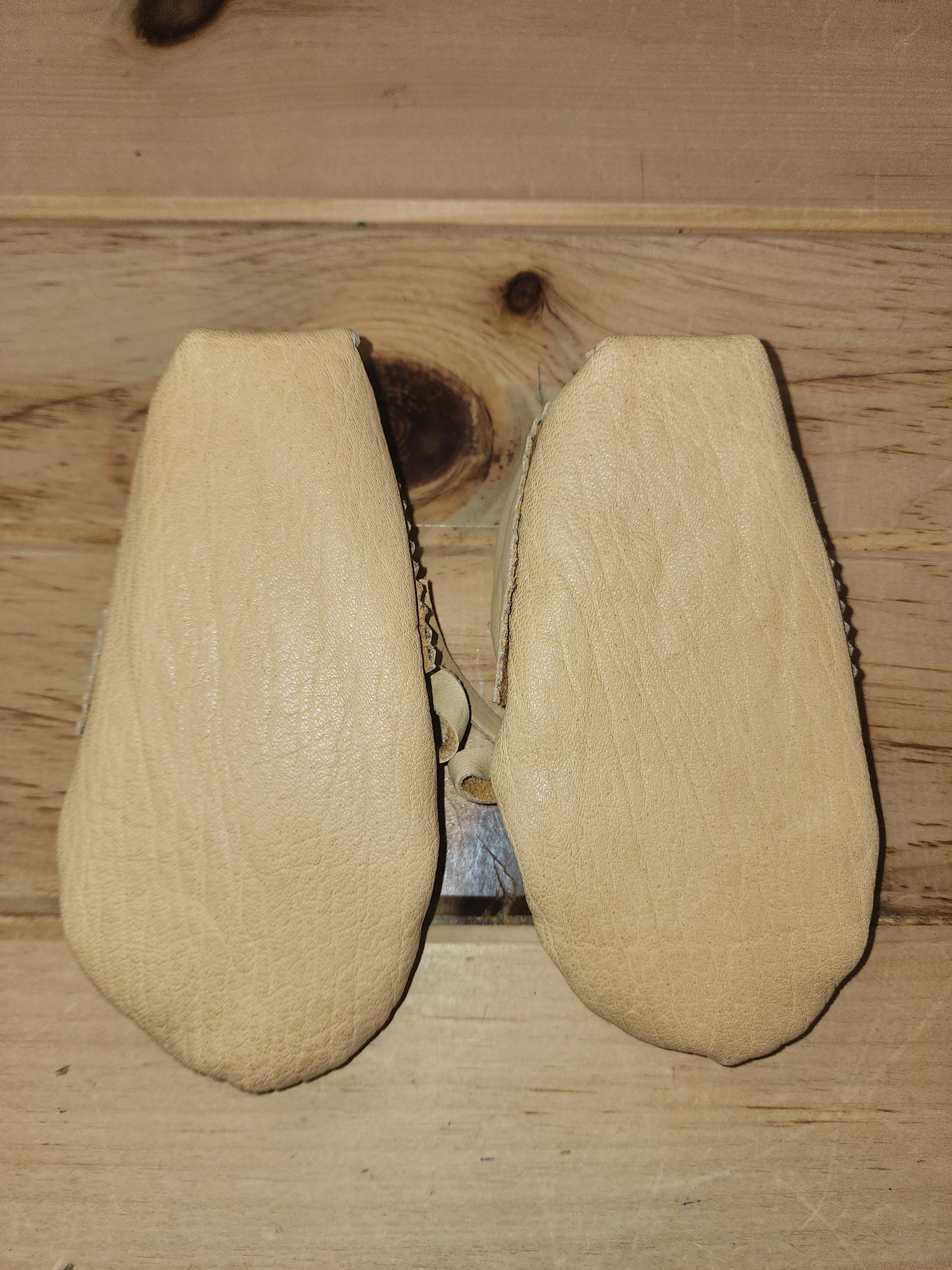 These size 8.5 moccasins are handcrafted in Canada from premium leather, ensuring durability and comfort. The intricate beaded design adds a traditional aesthetic, while the quality materials provide a supportive fit suitable for daily wear. The craftsmanship reflects a commitment to detail and cultural heritage.
