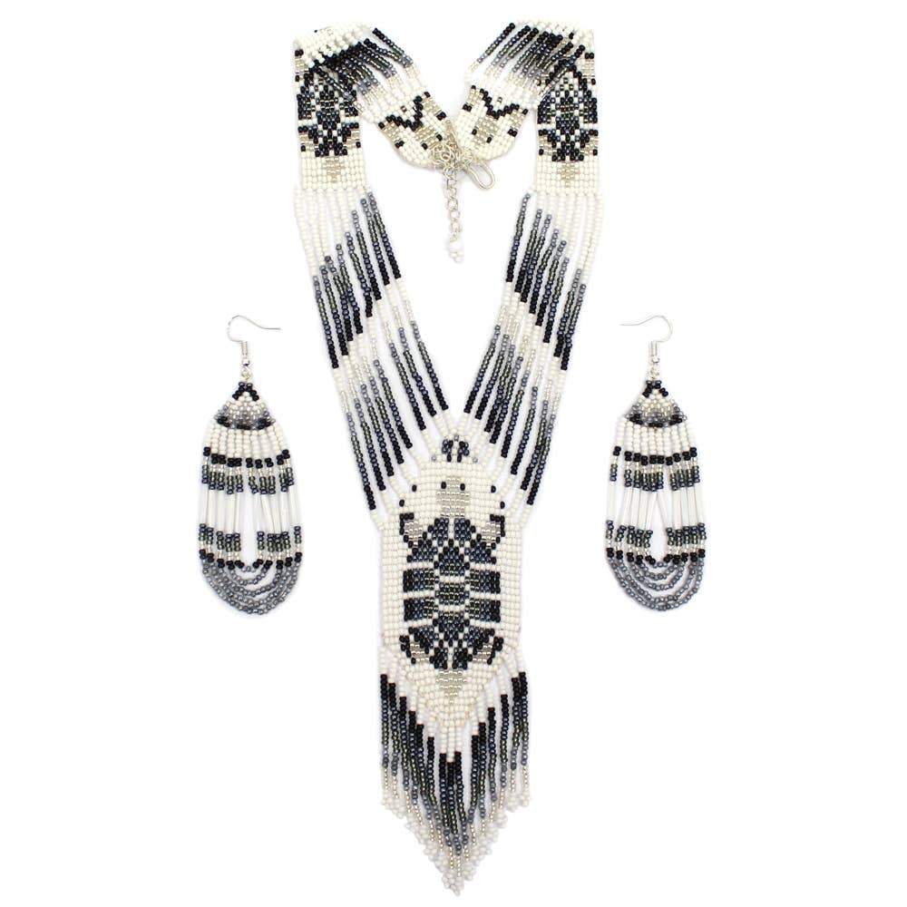 This is a very light weight Turtle design Necklace and earrings set. The colors of the beads used are Grey, White and Silver. The metal findings are alloy with silver polish and good for sensitive skin. It is nickel free. There is an extension chain in the necklace to make it adjustable. This stunning beaded necklace earrings set is handmade beautifully by skilled artisans. These Native American inspired beaded jewelry pieces which are a work of excellent craftmanship are made by women who live in Indian villages and are carrying this age-old tradition of beading. These tiny glass Czech beads are laid in bowls and strung into threading. Each piece of jewelry is labor intensive. Please see the picture for details. Please feel free to contact us if you have any questions. Customer satisfaction is our priority above all. These are suitable for all occasions. Product comes in multiple options. Please refer to the main picture to see what is included in the package.