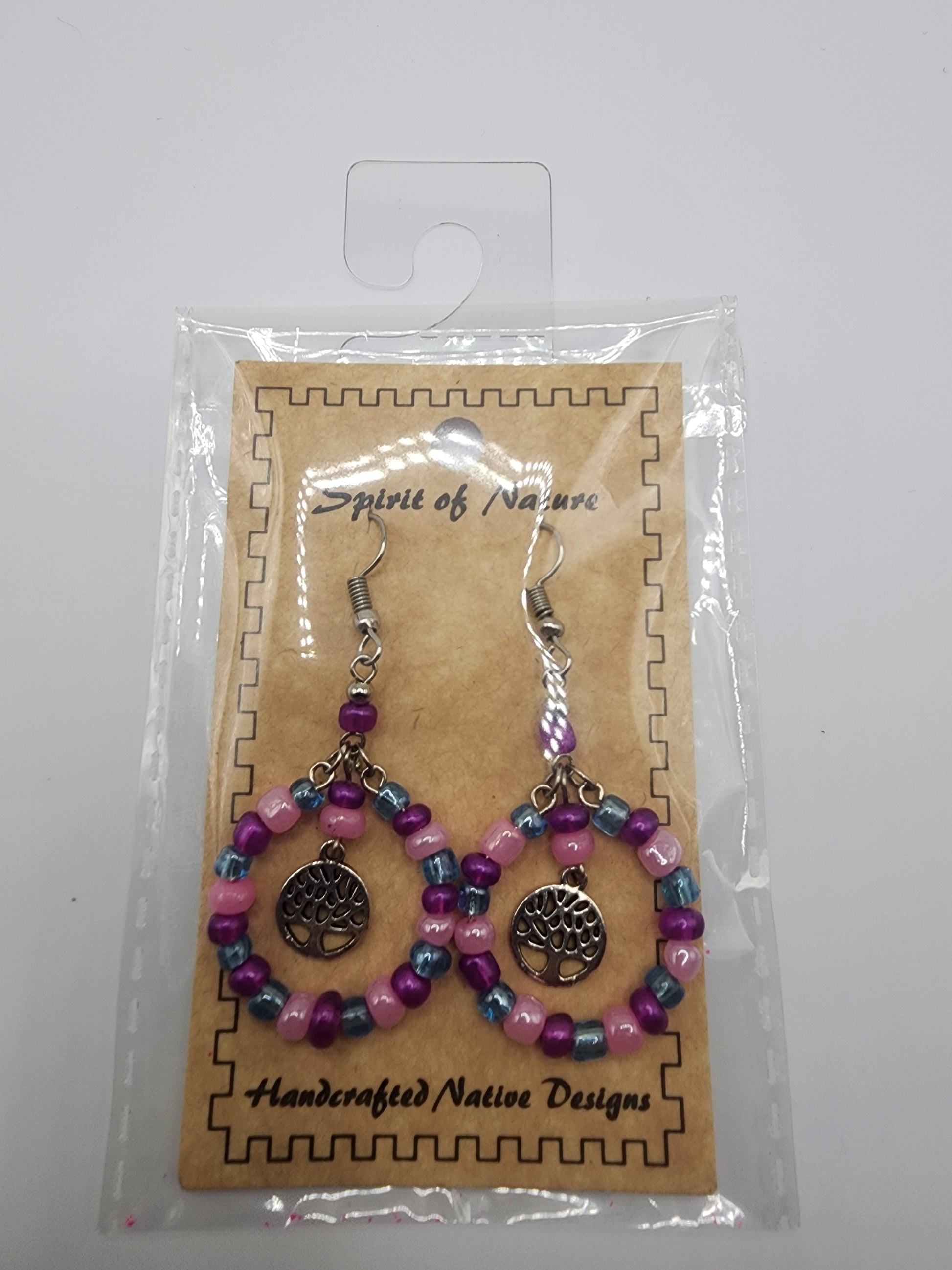 Handcrafted Beaded Earrings with Tree of Life Pendant