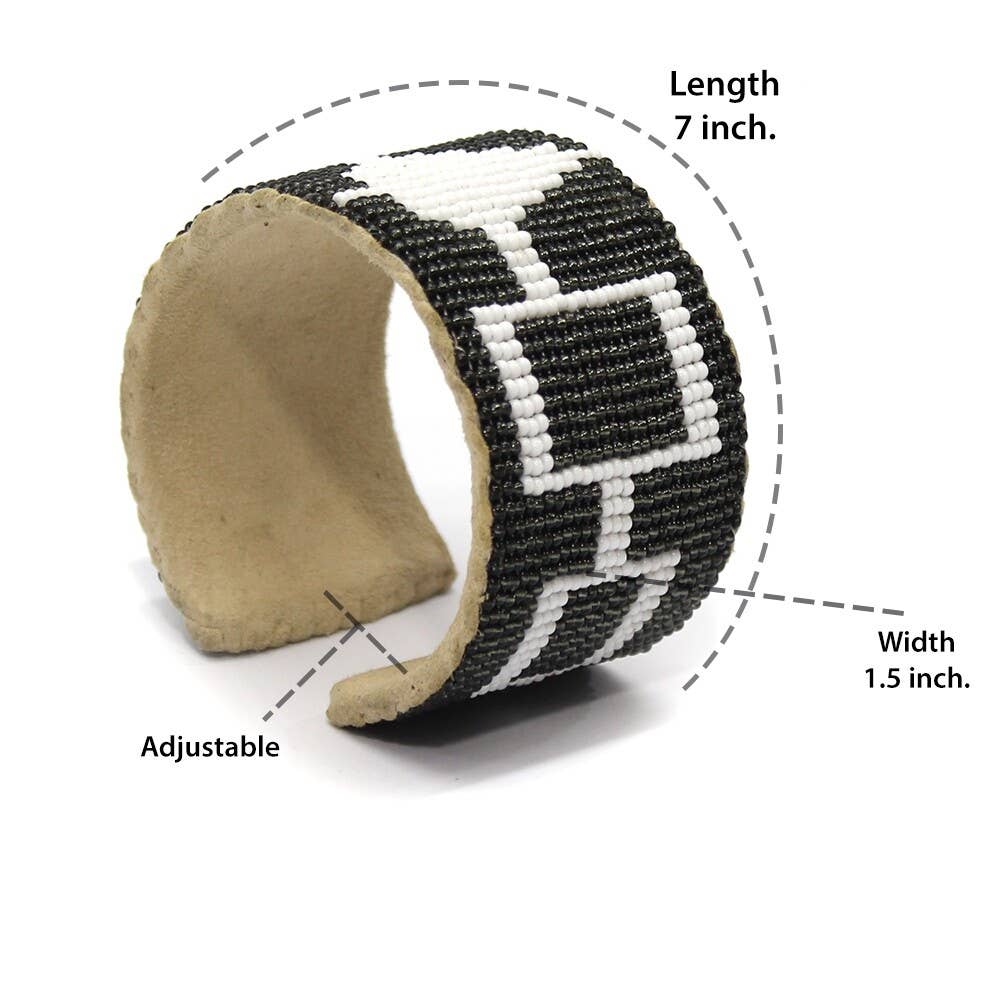 Iris Grey - White Seed Beads - Hiawatha Beadwork Beaded Bracelet Leather
