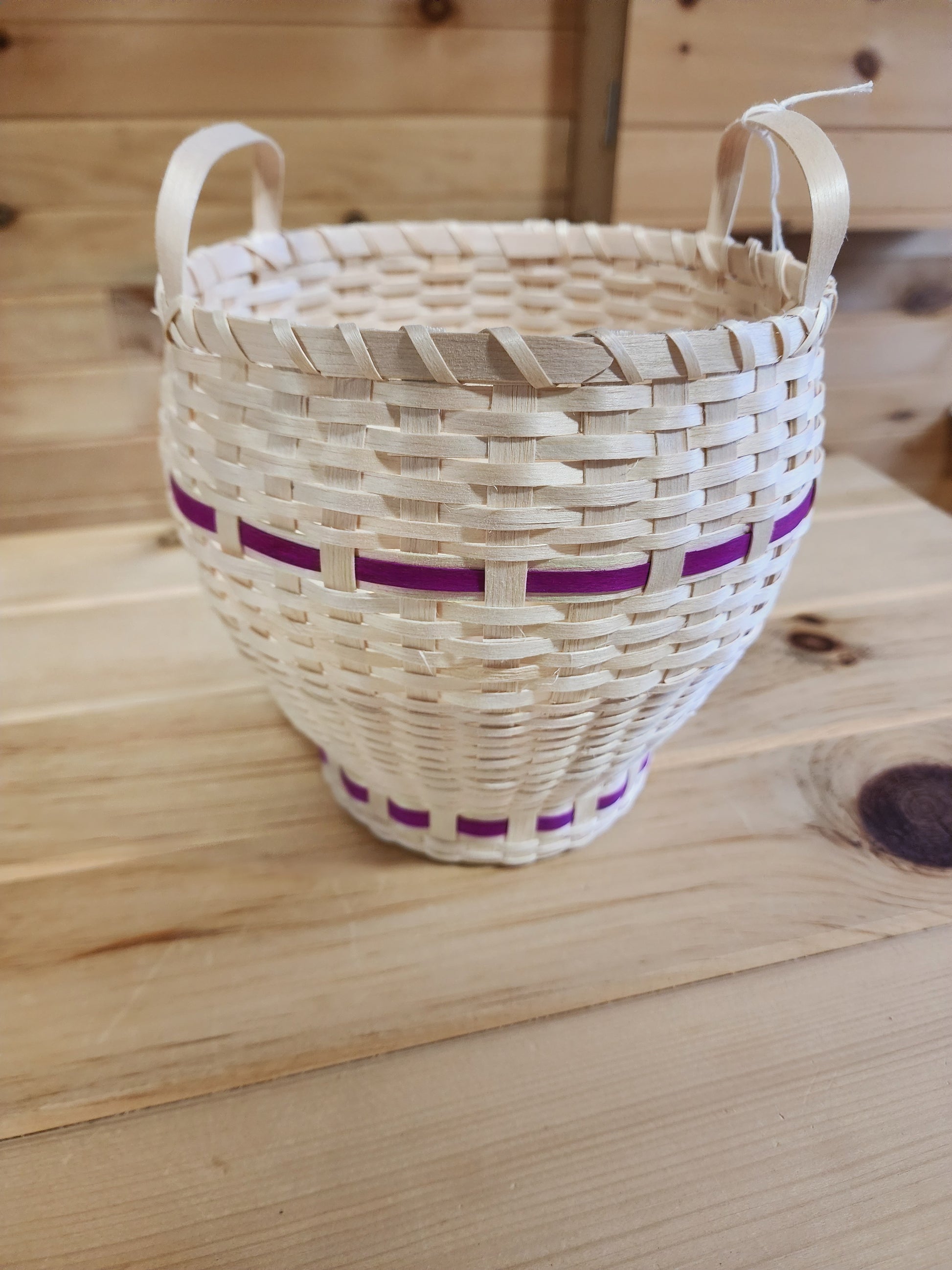 Handcrafted Large Storgae Ash Basket with Handle and pink Dye Design